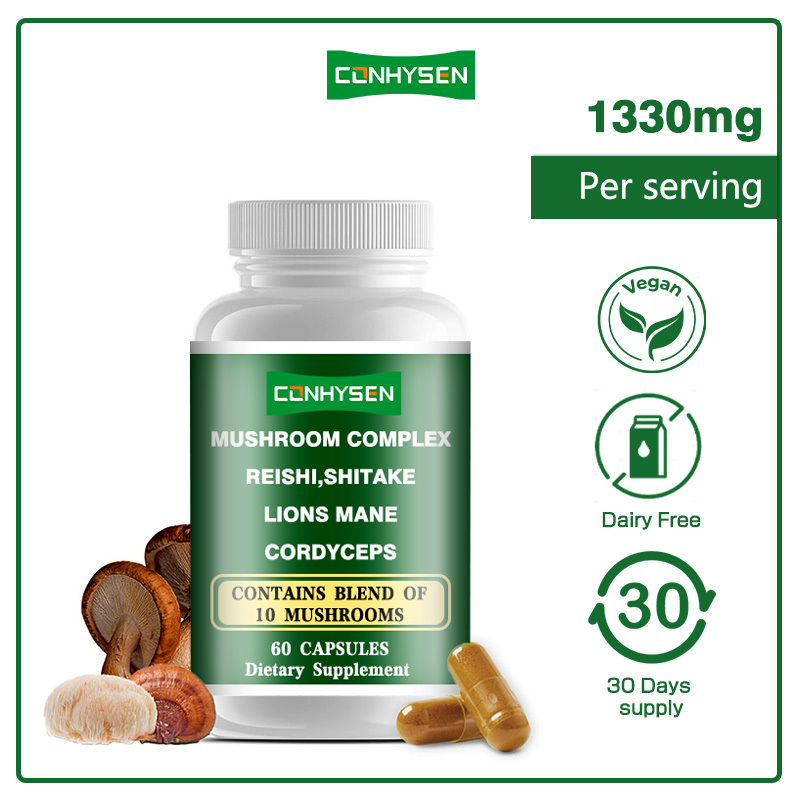 Cápsulas de Complejo de Hongos de Suministro de Fábrica Promueven el Enfoque y la Concentración Suplemento Dietético