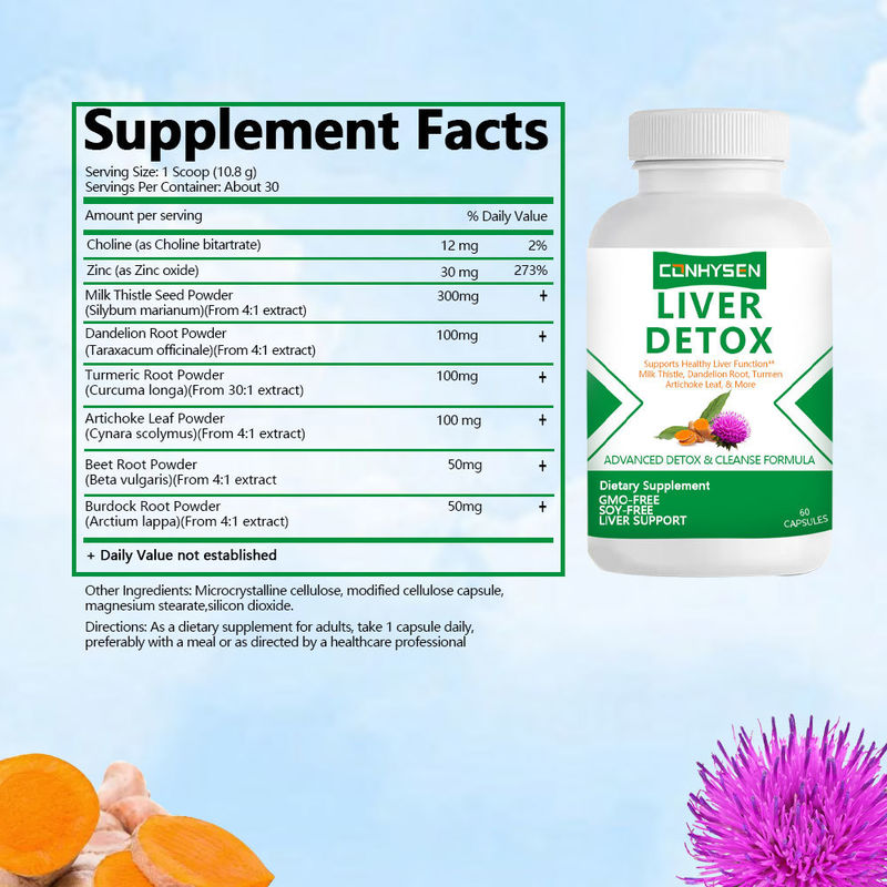 Venta al por mayor de cápsulas de desintoxicación hepática vegetariana personalizada sin OGM/soja