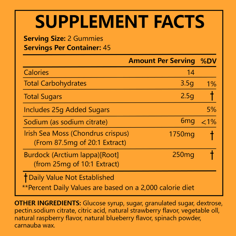 Gomitas de Musgo Marino 3000mg con Bardana Mejoran la Inmunidad Detox OEM/ODM Personalizado