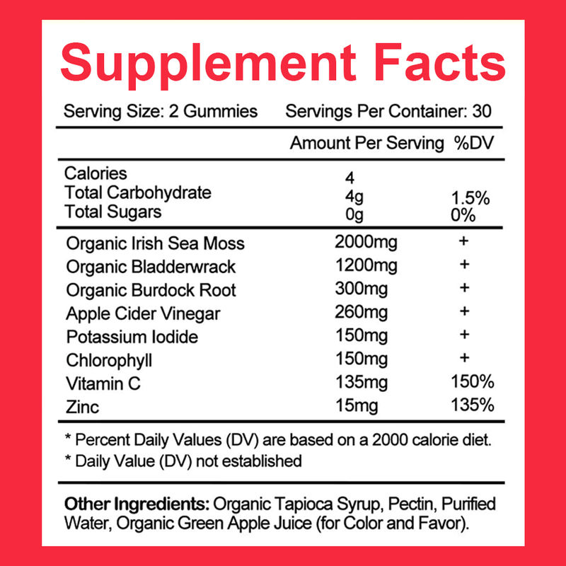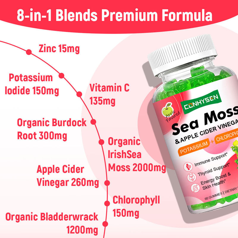 Este musgo marino gomas lanzado porGuangdong Kangsheng Pharmaceutical Technology Co., Ltd. y sus subsidiariasestá hecho de musgo marino irlandés de alta calidad como materia prima principal y refinado con tecnología moderna.conservantes o glutenEl producto ha sido formulado científicamente para retener 72 oligoelementos como yodo, calcio y magnesio de las algas marinas completamente.Se añaden zumos de frutas naturales para el sabor que es adecuado para niños y adultosEste producto es particularmente adecuado para personas con inmunidad baja, que a menudo se quedan despiertos hasta tarde, y para personas con dietas irregulares.Guangdong Kangsheng Pharmaceutical Technology Co., Ltd. y sus subsidiariasayuda a mejorar la condición física, mejora la función del sistema digestivo y promueve el metabolismo.