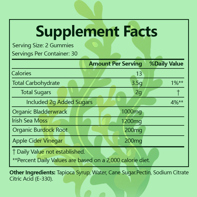 Musgo marino irlandés, Bladderwrack orgánico, Raíz de bardana orgánica, Vinagre de sidra de manzana