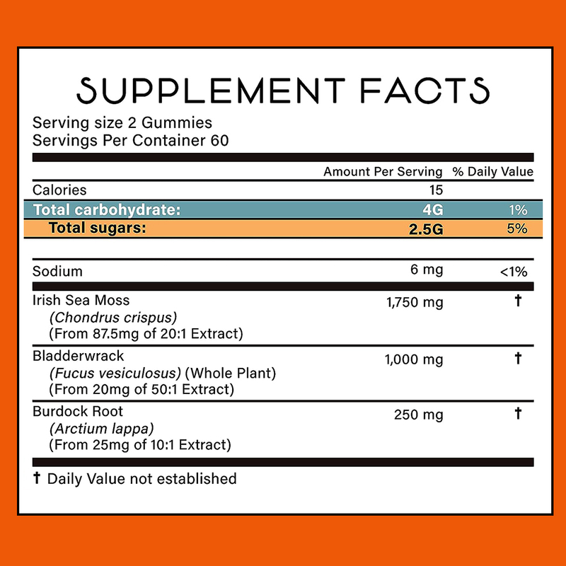 Musgo marino irlandés, fucus, raíz de bardana, sodio