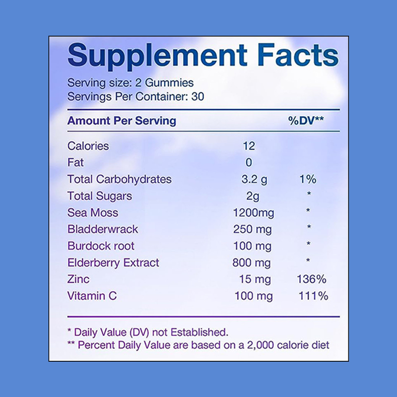 Estas gomitas de musgo marino lanzadas porpuede personalizar la producción de acuerdo con las necesidades específicas del cliente, incluida la formulación del producto, el diseño del empaque, la escala de producción y otros aspectos. Esta flexibilidad permite a la empresa adaptarse mejor a las demandas del mercado en diferentes países y regiones, proporcionando soluciones personalizadas para los clientes.están hechas de musgo marino irlandés de alta calidad como materia prima principal y refinadas con tecnología moderna. Las gomitas de musgo marino están hechas de extractos de plantas naturales puros y no contienen colorantes artificiales, conservantes ni gluten. Son adecuadas para todo tipo de personas. El producto ha sido formulado científicamente para retener 72 oligoelementos como yodo, calcio y magnesio de las algas marinas por completo. Se agregan jugos de frutas naturales para dar sabor, adecuados tanto para niños como para adultos. Este producto es particularmente adecuado para personas con baja inmunidad, que a menudo se quedan despiertas hasta tarde y aquellas con dietas irregulares. La fórmula única depuede personalizar la producción de acuerdo con las necesidades específicas del cliente, incluida la formulación del producto, el diseño del empaque, la escala de producción y otros aspectos. Esta flexibilidad permite a la empresa adaptarse mejor a las demandas del mercado en diferentes países y regiones, proporcionando soluciones personalizadas para los clientes.ayuda a mejorar la condición física, mejorar la función del sistema digestivo y promover el metabolismo.