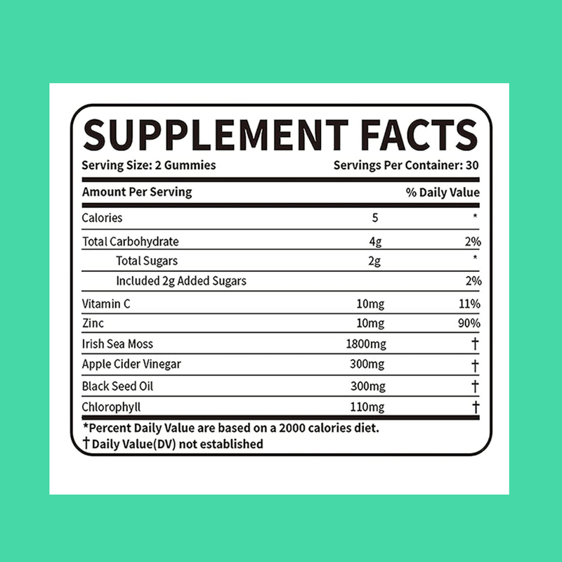 El aceite de semilla negra, el vinagre de sidra de manzana, el zinc, la vitamina C, la clorofila, el musgo de mar irlandés