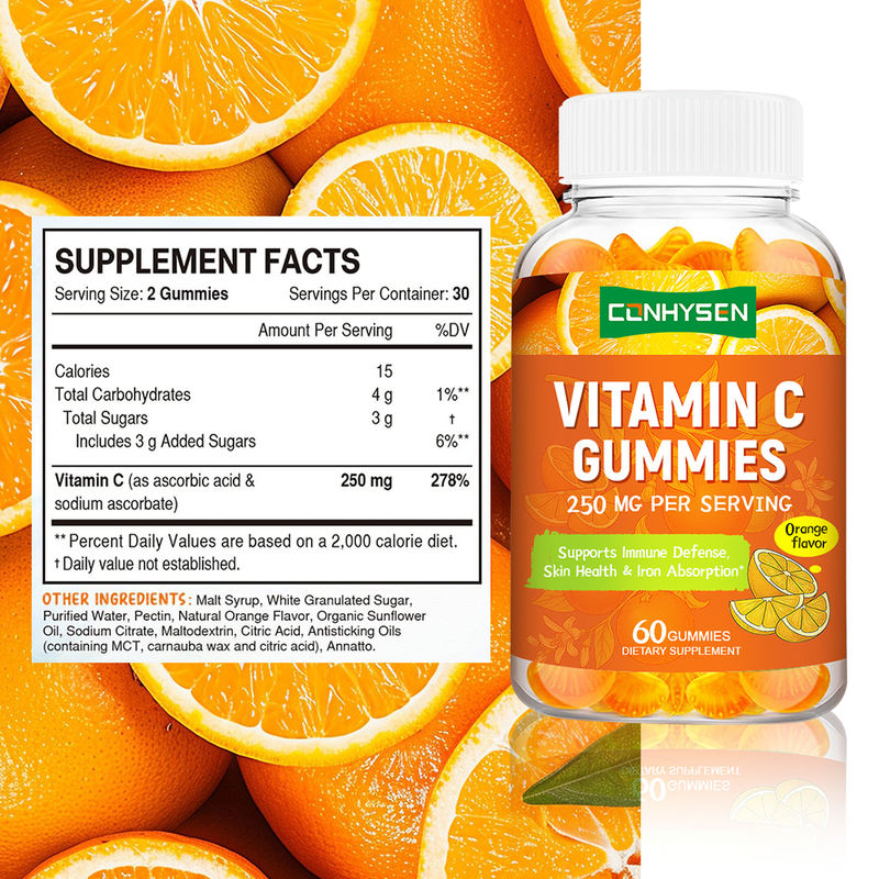 Gomitas de vitamina C de 250 mg personalizadas para mantener una piel sana, directo de fábrica