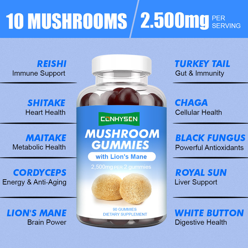 Suministrador de gomas de hongo 10 en 1 fórmula personalizada Apoyo a la salud del corazón