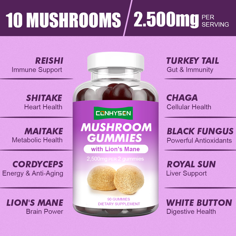 Las gomas de hongo 2500 mg Aumentan la función metabólica Fabricante Personalizado