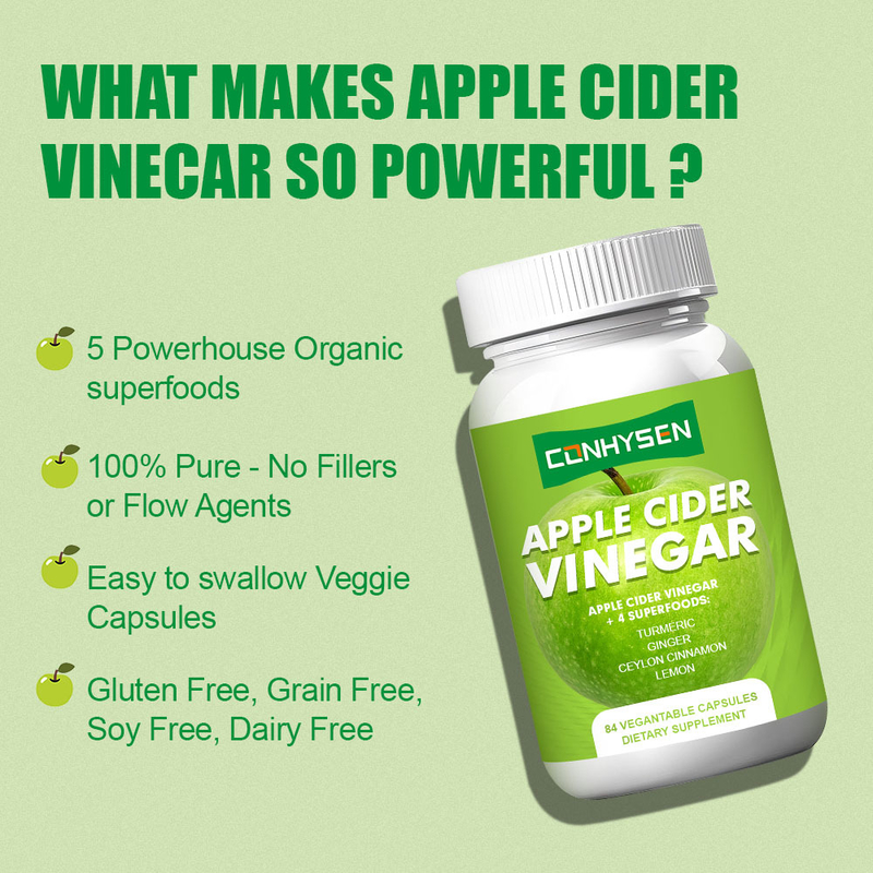 Las cápsulas de vinagre de sidra de manzana lanzadas por Guangdong Kangsheng Pharmaceutical Technology Co., Ltd.son un suplemento natural y saludable. Está hecho de extracto de fermentación de manzana de alta calidad. El producto se refina mediante tecnología avanzada y no contiene aditivos artificiales ni conservantes, lo que garantiza la seguridad y la fiabilidad. Esta cápsula tiene múltiples beneficios para la salud: En primer lugar, el ácido acético en el vinagre de manzana ayuda a promover el metabolismo y mantener una función saludable del sistema digestivo; En segundo lugar, el producto contiene abundantes probióticos y sustancias enzimáticas, que pueden ayudar a equilibrar la flora intestinal; Además, los polifenoles en el vinagre de manzana tienen efectos antioxidantes, lo que ayuda a eliminar los radicales libres en el cuerpo.