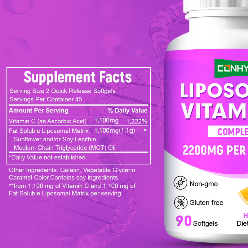 Cápsulas blandas de vitamina C liposomal de apoyo a la inflamación del proveedor Factory 2200 mg