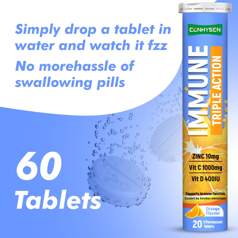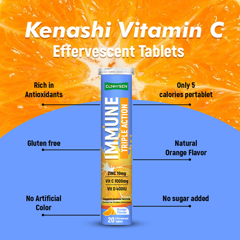 Las tabletas efervescentes inmunitarias lanzadas por Guangdong Kangsheng Pharmaceutical Technology Co., Ltd. son un tipo de tableta efervescente especialmente diseñada para mejorar la inmunidad. Este producto combina científicamente tres ingredientes principales: vitamina C, vitamina D y zinc, para proporcionar una solución de apoyo inmunológico conveniente y eficiente para las personas modernas. La vitamina C, como un poderoso antioxidante, puede promover la función de los glóbulos blancos y mejorar la resistencia del cuerpo; la vitamina D ayuda a regular el equilibrio del sistema inmunológico y mejorar la absorción de calcio; el zinc es un mineral clave para mantener la actividad de las células inmunitarias. Los tres elementos trabajan juntos, proporcionando un efecto sinérgico y ayudan a construir una defensa inmunológica más fuerte.