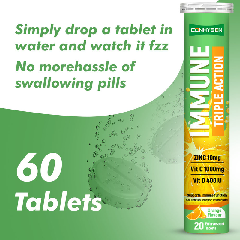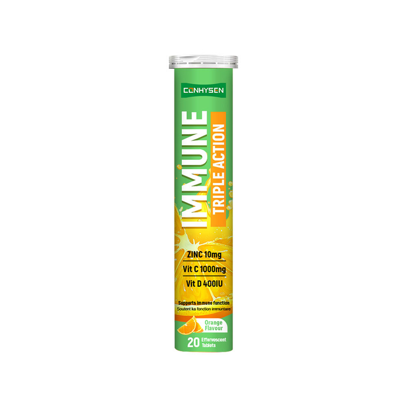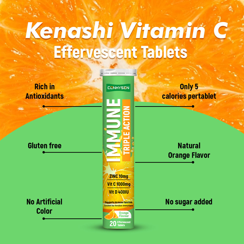 Las tabletas efervescentes inmunitarias lanzadas por Guangdong Kangsheng Pharmaceutical Technology Co., Ltd. son un tipo de tableta efervescente especialmente diseñada para mejorar la inmunidad. Este producto combina científicamente tres ingredientes principales: vitamina C, vitamina D y zinc, para proporcionar una solución de apoyo inmunológico conveniente y eficiente para las personas modernas. La vitamina C, como un poderoso antioxidante, puede promover la función de los glóbulos blancos y mejorar la resistencia del cuerpo; la vitamina D ayuda a regular el equilibrio del sistema inmunológico y mejorar la absorción de calcio; el zinc es un mineral clave para mantener la actividad de las células inmunitarias. Los tres elementos trabajan juntos, proporcionando un efecto sinérgico y ayudan a construir una defensa inmunológica más fuerte.