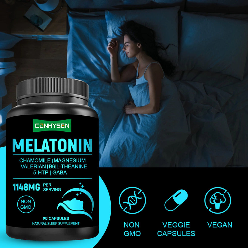 Cápsulas de melatonina personalizadas de 1148 mg, venta directa de fábrica, mejoran la calidad del sueño a la hora de acostarse