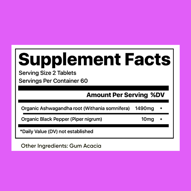Pimienta negra orgánica, extracto de raíz de ashwagandha, acacia de goma