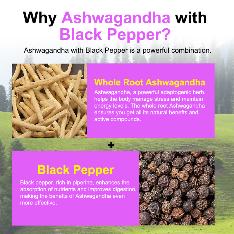 Formula de absorción mejorada con ashwagandha orgánico y pimienta negra precio al por mayor