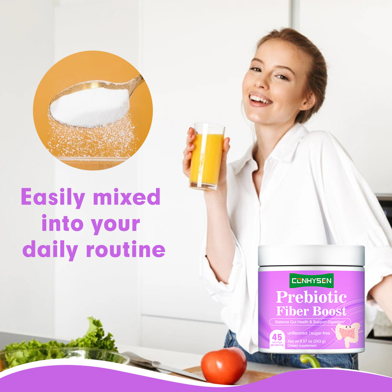 Nuestra mezcla prebiótica especializada combina fibras solubles de múltiples fuentes naturales, incluyendo inulina de raíz de achicoria y FOS, diseñada específicamente para tratar el estreñimiento y la hinchazón.Los estudios clínicos demuestran que esta formulación única aumenta la frecuencia de los movimientos intestinales en un 45% mientras reduce la incomodidad de la hinchazón a través de procesos de fermentación optimizados.